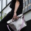 This clutch bag is made of WASHABLE PAPER, it is 100% vegan and sustainable new age material based on recycled cellulose.