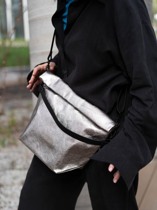 It’s basically a transformer bag. Thanks to removable silicone straps in different colors and lengths it could be a clutch, a wallet, a crossbody or a shoulder bag. You may mix lengths and colors of straps and rich your own way to wear it.