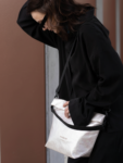 It’s basically a transformer bag. Thanks to removable silicone straps in different colors and lengths it could be a clutch, a wallet, a crossbody or a shoulder bag. You may mix lengths and colors of straps and rich your own way to wear it.