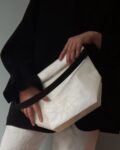This clutch bag is made of WASHABLE PAPER, it is 100% vegan and sustainable new age material based on recycled cellulose.