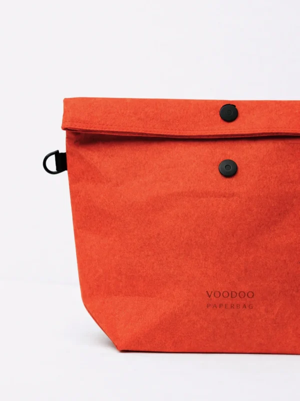 This clutch bag is made of WASHABLE PAPER, it is 100% vegan and sustainable new age material based on recycled cellulose.