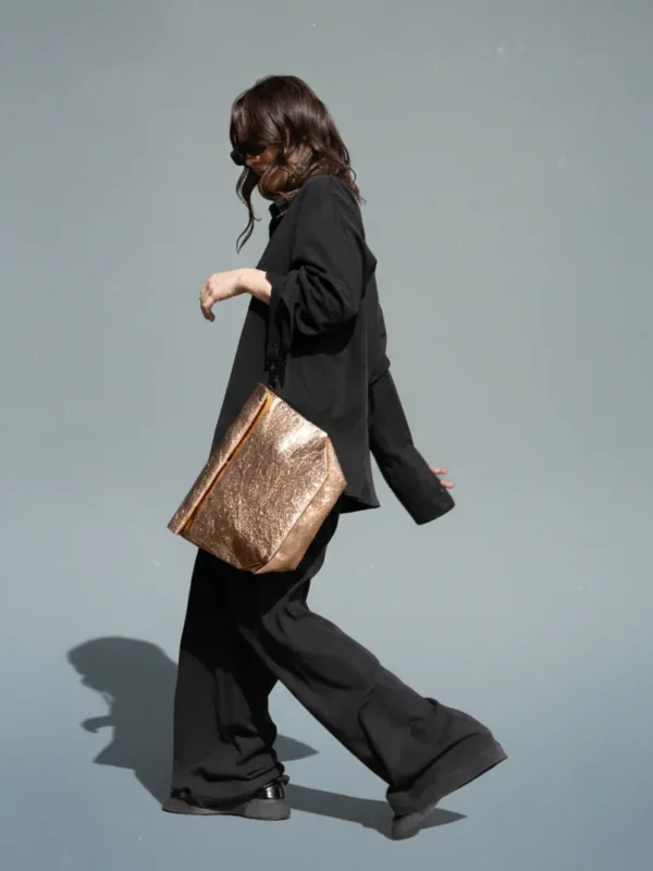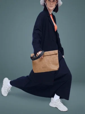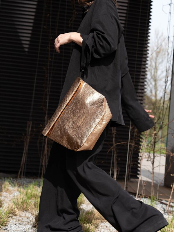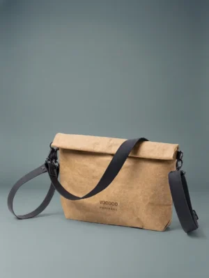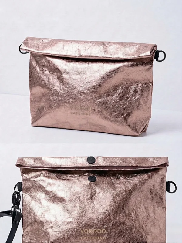 This clutch bag is made of WASHABLE PAPER, it is 100% vegan and sustainable new age material based on recycled cellulose.