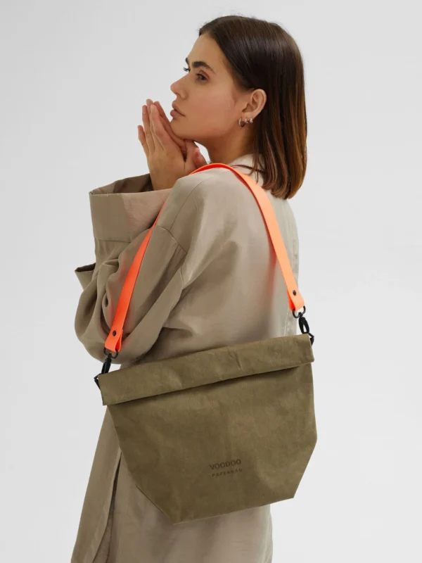 This clutch bag is made of WASHABLE PAPER, it is 100% vegan and sustainable new age material based on recycled cellulose.