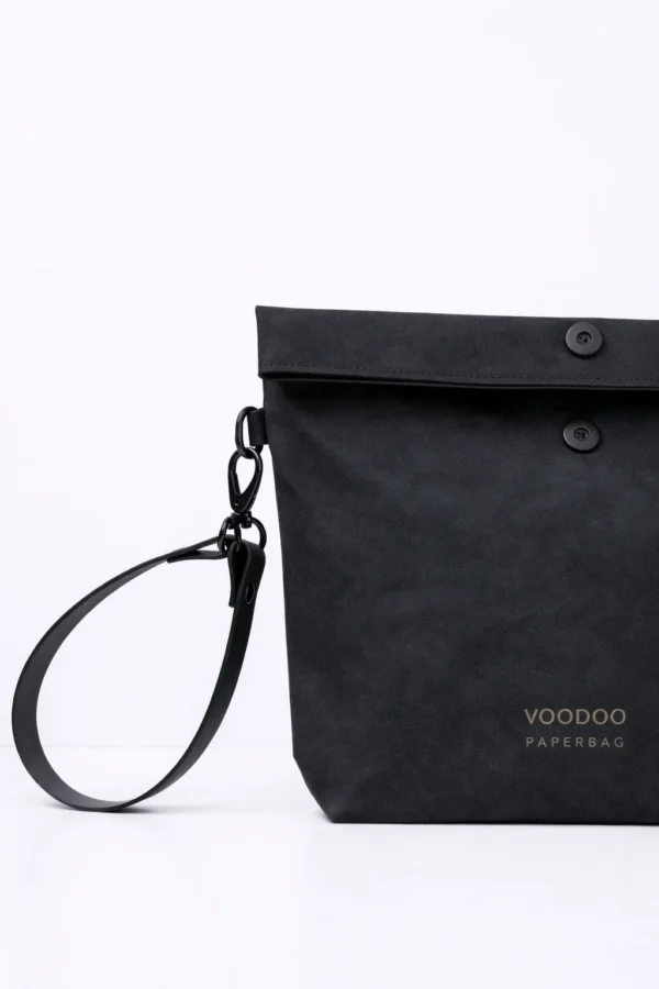 This clutch bag is made of WASHABLE PAPER, it is 100% vegan and sustainable new age material based on recycled cellulose.
