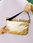 This clutch bag is made of WASHABLE PAPER, it is 100% vegan and sustainable new age material based on recycled cellulose.